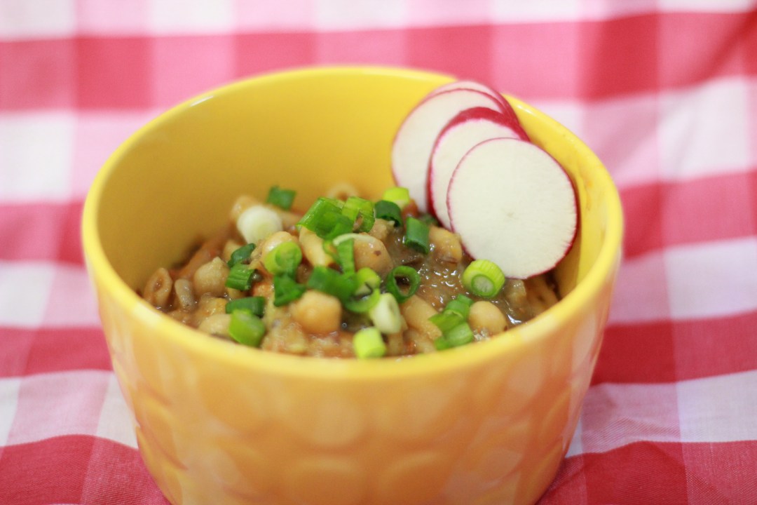 - Preheat a soup pot over medium heat. Sauté the onions and carrots in water for 10 minutes. Add garlic, mushrooms, and herbs, and sauté for another 5 minutes. Add 6 cups of water and the chickpeas. Cover and bring to a boil.